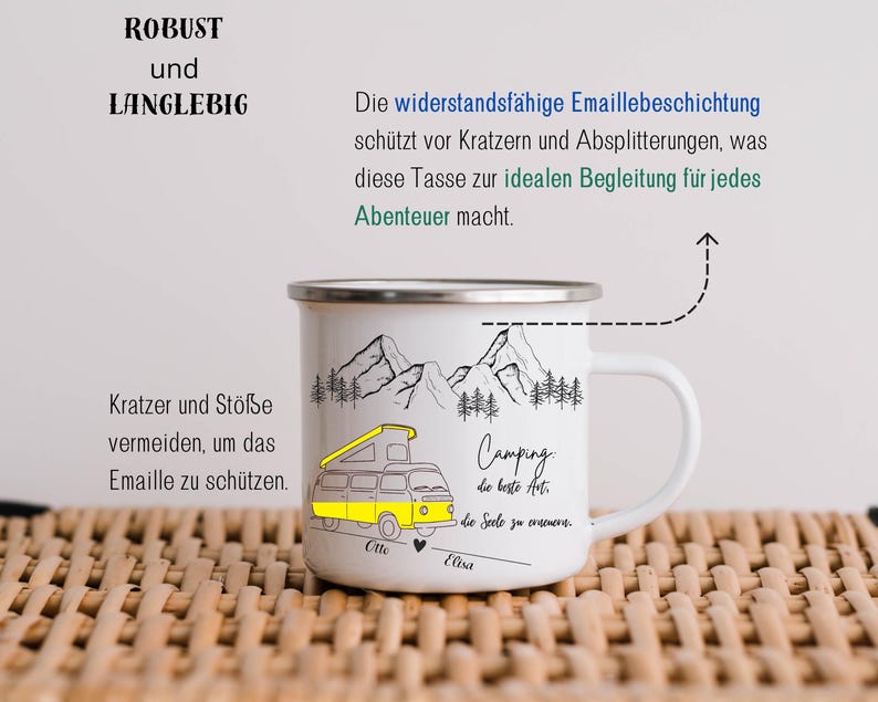 Camping Mug Enamel Ceramic Personalized Gift Couple Motorhome Name Mountains Nature Adventure Mug Printed on Both Sides Outdoor