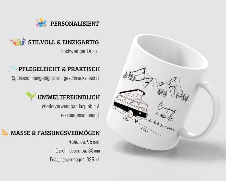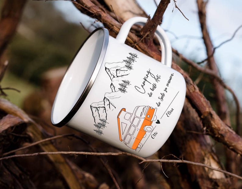Perfect for adventurers and nature lovers, this personalized camping mug combines rustic charm with practical durability. Crafted from quality enamel ceramic, it features custom printing on both sides—ideal for couples or motorhome enthusiasts who want their names, mountains, and outdoor spirit displayed. Whether you're sipping morning coffee at basecamp or sharing stories around the fire, this mug celebrates your love of adventure. A thoughtful gift for anyone who calls the great outdoors home.