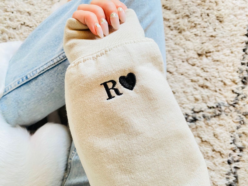 Celebrate your connection with this custom embroidered initial heart sweatshirt, the perfect Valentine's Day or anniversary gift for couples. Featuring a personalized initial elegantly embroidered on the sleeve alongside a heart design, this cozy crewneck sweatshirt combines comfort with meaningful personalization. Ideal for matching sets or individual wear, it's a thoughtful way to express your bond. Premium quality fabric ensures lasting wear and softness, making it a cherished keepsake for years to come.