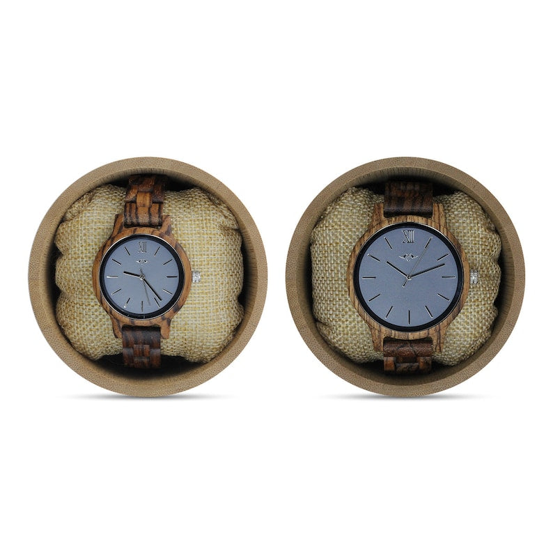 Celebrate your connection with matching Zebra Wood Couple's Watches—a thoughtful gift that brings you together. Crafted from warm, natural zebra wood with personalized engraving, these timepieces blend timeless elegance with meaningful customization. Perfect for weddings, anniversaries, or simply honoring your bond, each watch features a comfortable fit for both men and women. The rich wood grain creates a unique aesthetic that stands out from conventional watches, while the engraved message adds a deeply personal touch. Ideal for couples who appreciate nature-inspired design and sentimental gifts that tell your story.