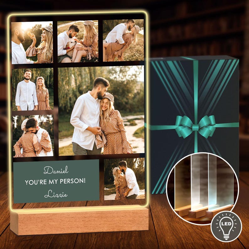 Maverton Personalised LED Photo Frame for woman - LED Decoration with engraving - Photo Frame Lamp for Birthday - Plaque LED for couple